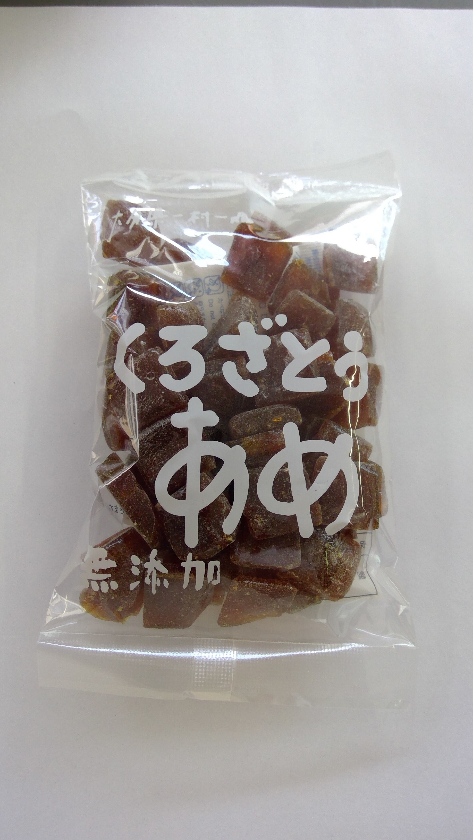 黒砂糖を使用した風味豊かな当店自慢の「くろざとうあめ」。黒糖のまろやかな味わいがお口の中に広がります。職人が手作りするお菓子なので、一つ一つの形や色合いが異なりますが、あたたかみのある飴に仕上がっています。無添加にこだわって心を込めて作りました。